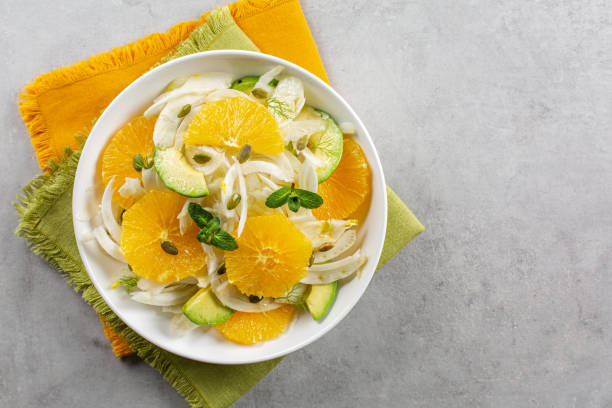 Peler à vif les oranges après en avoir coupé les extrémités. Détacher les suprêmes à l’aide d’un couteau bien aiguisé et ôter les peaux blanches. Dresser les suprêmes d’orange avec le fenouil et les avocats dans un plat ou sur quatre assiettes.